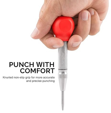 ■ 易於使用和抓握:這款中心金屬沖頭具有防滑表面和精確居中的尖端,每次都能增強力控制,以實現精確的孔。 用力向下推動工具即可啟動工具,以獲得您所需的精確尺寸的孔。